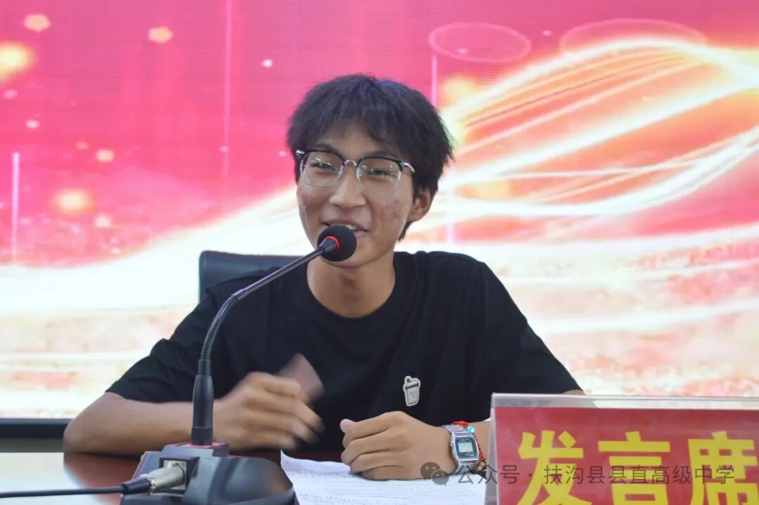 感恩母校,难忘师恩。胡松阳、王智勇、张明扬三位留学生代表上台发言,表达了对县直高中和老师的衷心感谢。他们表示,在母校的三年时光将永存心间,在未来的日子里,将牢记母校“务实求真,追求卓越”的校训,砥砺前行,不懈奋斗,学成报国。