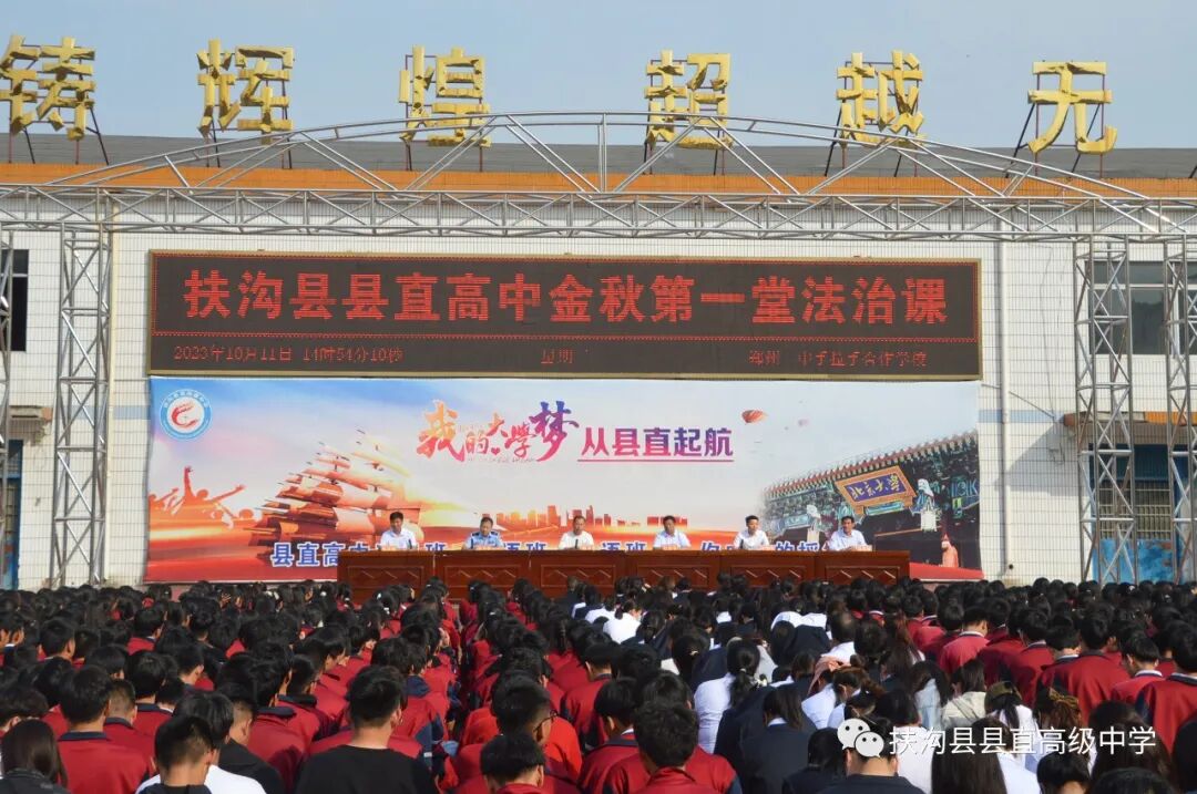 为了进一步推进校园法治宣传教育,提高广大师生的法律意识和法治素质,有效遏制和消除校园欺凌,预防未成年犯罪,创建平安和谐校园,我校于2023年10月11日下午在学校广场隆重举行了法治报告会。扶沟县扶亭街道党工委委员、副主任杨卫东、扶沟县直高中副校长杜金明、扶沟县产业集聚区派出所所长陈卫民、扶沟县扶亭街道司法所所长史渤玉,扶沟县直高中副校长张团刚等领导出席了此次报告会。大会由政教处主任陈琼琳主持。
